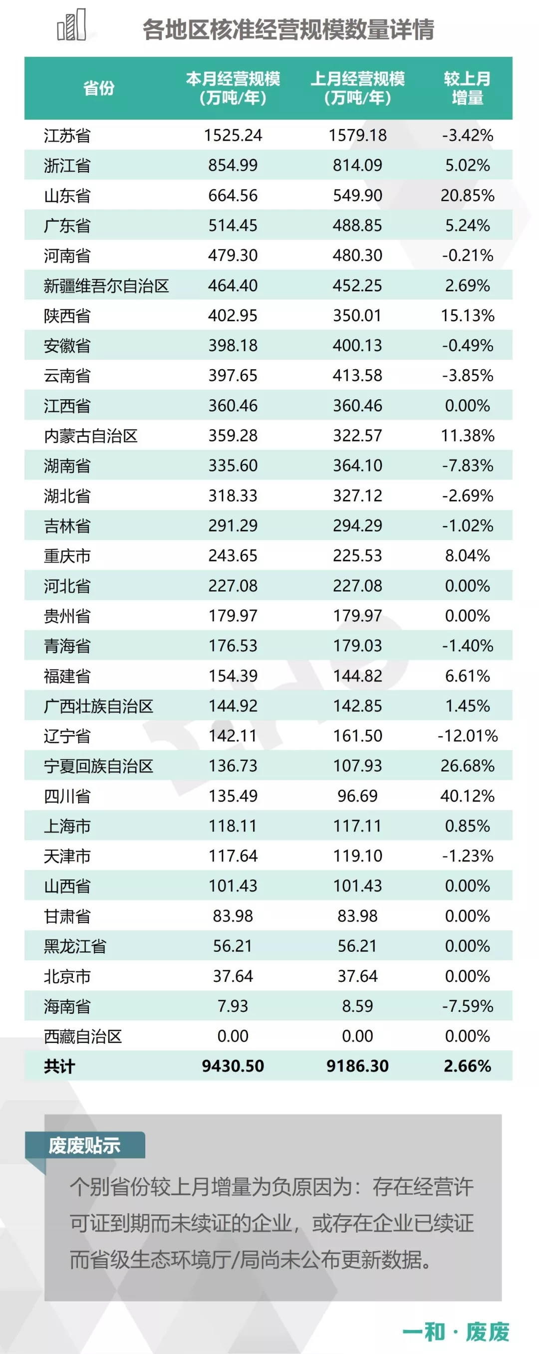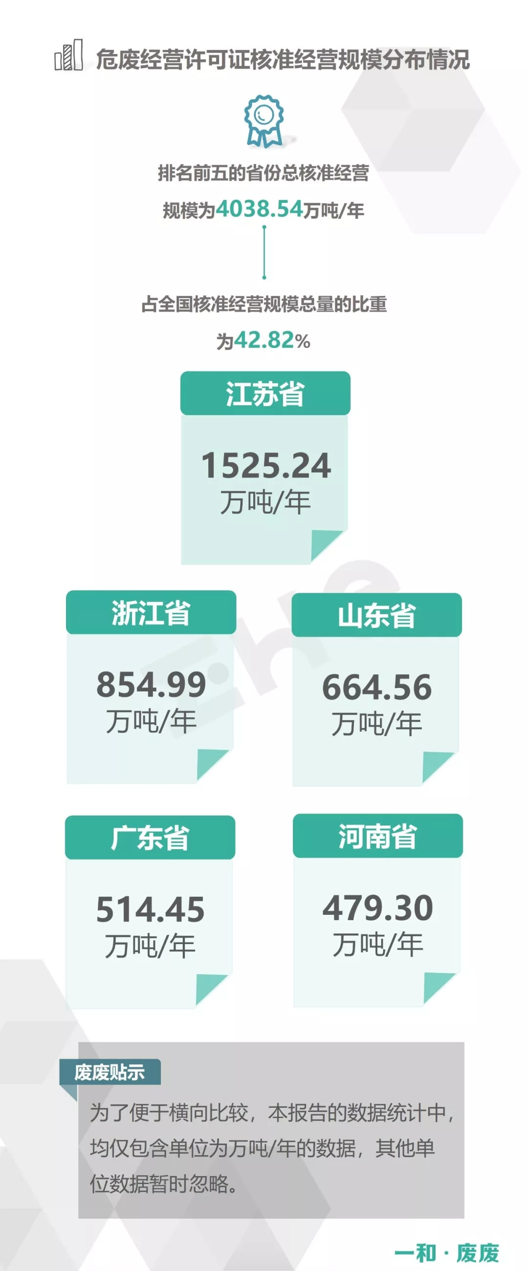 5.統(tǒng)計范圍:本次數(shù)據(jù)收集統(tǒng)計的范圍為省級生態(tài)環(huán)境廳(局)官方公布的持有危險廢物經(jīng)營許可證企業(yè)的數(shù)據(jù),因此由地級市發(fā)布的醫(yī)療廢物經(jīng)營許可證、收集經(jīng)營許可證,且未納入省級生態(tài)環(huán)境廳(局)公布數(shù)據(jù)的部分,并未計入統(tǒng)計數(shù)據(jù)中。