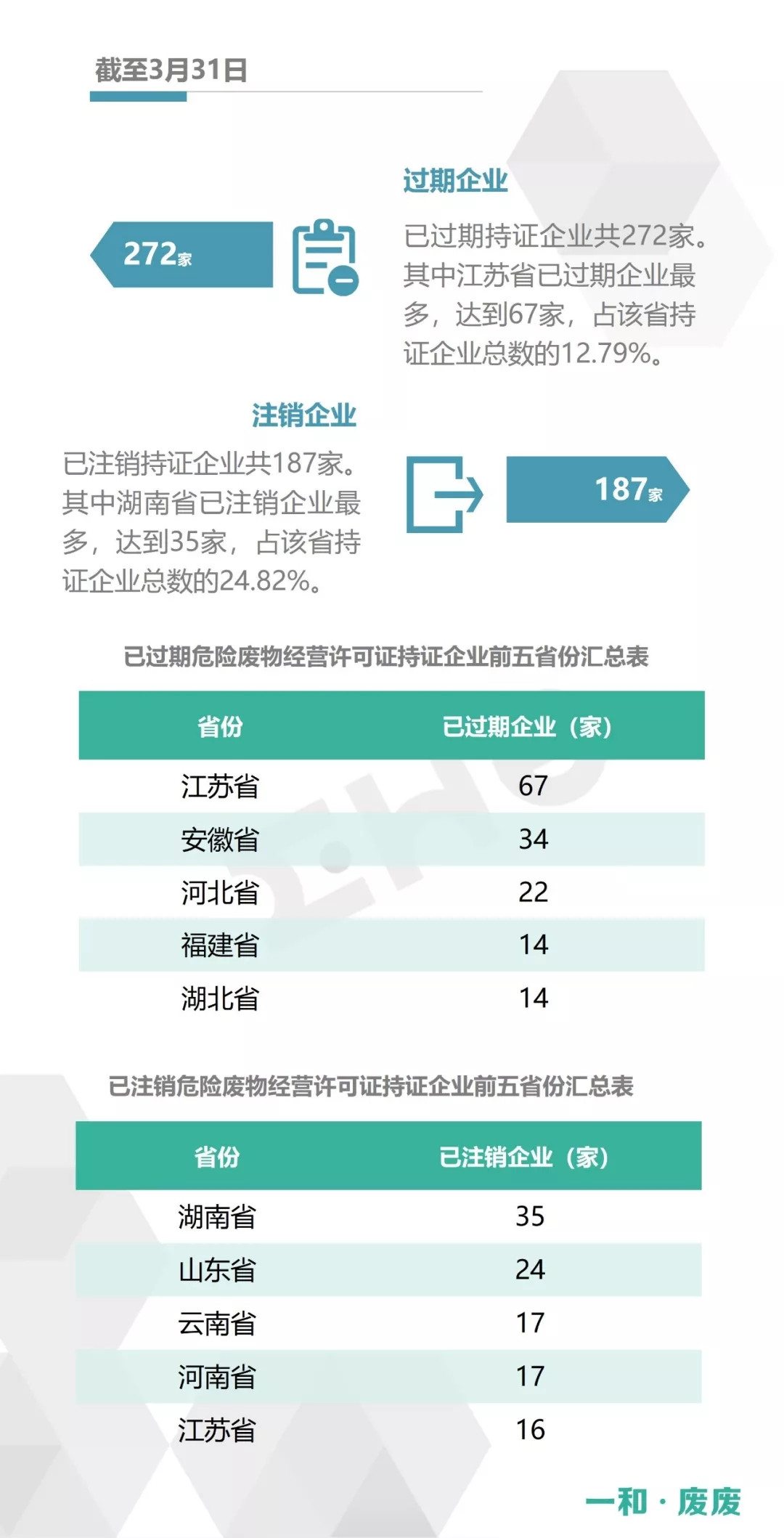 原標題:2019年3月全國危險廢物經(jīng)營許可證統(tǒng)計概況