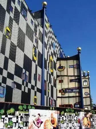 在奧地利首都維也納市區(qū)北部,多瑙運(yùn)河岸邊的施比特勞區(qū)域,有一座由奧地利著名建筑設(shè)計(jì)師“百水先生”設(shè)計(jì)的“怪房子”。它有著童話般的建筑外觀,歪歪扭扭的輪廓線條,外墻上還打著彩色的“補(bǔ)丁”,屋頂上種植著樹木花草……是施比特勞區(qū)域的一座標(biāo)志性建筑。