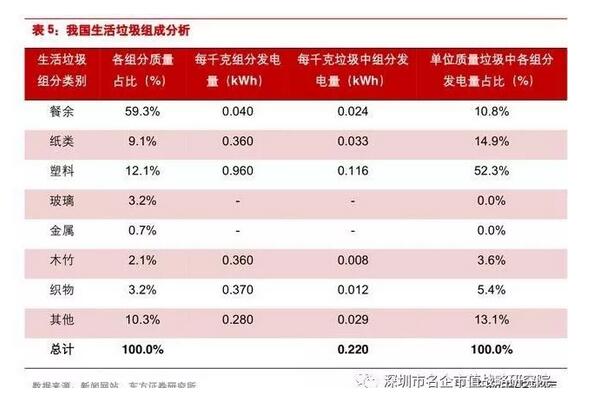 1) 垃圾分類將提高垃圾熱值;我國(guó)生活垃圾平均熱值較發(fā)達(dá)國(guó)家低,主要原因是廚余垃圾占比較 高。分析單位質(zhì)量垃圾的發(fā)電量,熱值較高的塑料,其貢獻(xiàn)度達(dá)到 52.3%,其次為紙類、織 物等,而餐廚垃圾的貢獻(xiàn)度僅為 10.8%。我國(guó)有部分城市已經(jīng)開始了垃圾分類的試點(diǎn),實(shí)行 干濕分離,生活垃圾中餐廚垃圾占比下降,垃圾熱值有望提升。