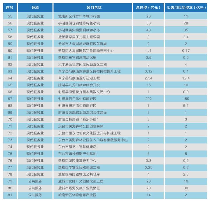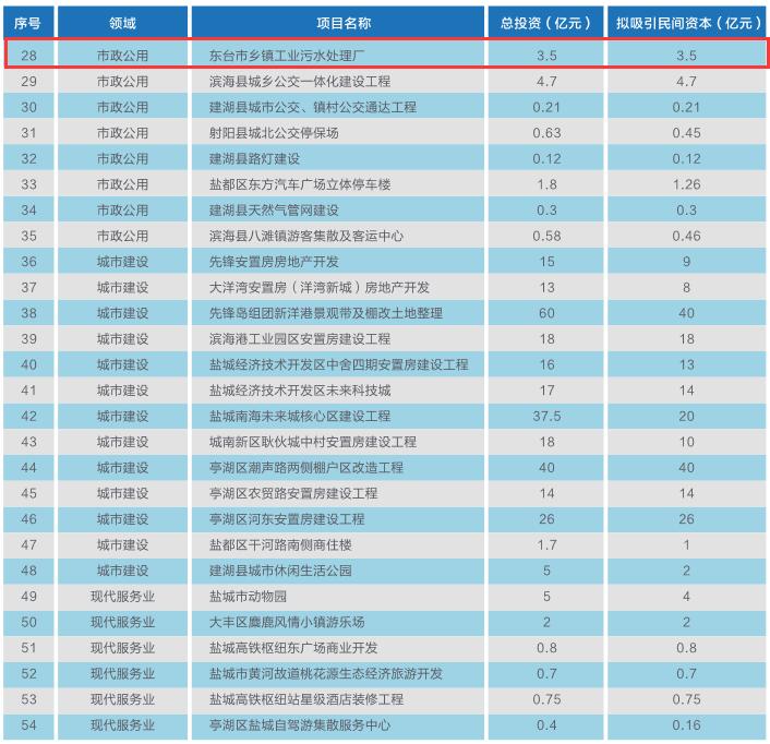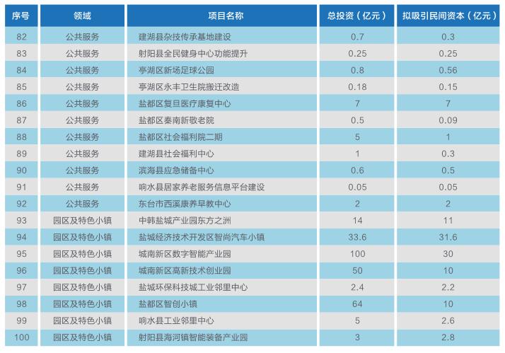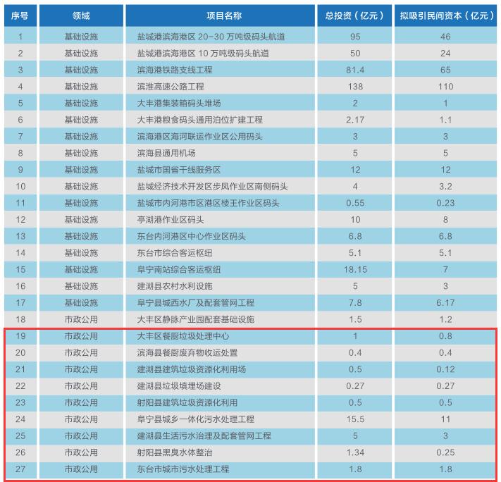 2019年鹽城市重大項(xiàng)目向民間資本(社會(huì)資本)推介項(xiàng)目