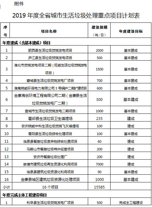 附項目 | 安徽住建廳:今年建成16個垃圾處理項目,新開工10個