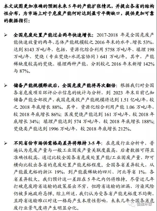 產(chǎn)能維持高速增長、重申危廢行業(yè)“供需兩旺五年”邏輯