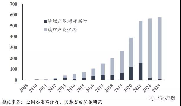 預(yù)計(jì)2021年,全國填埋處置產(chǎn)能約為512萬噸/年。到2023年底,填埋產(chǎn)能規(guī)模將不低于574萬噸,較之2018年底的200萬噸/年,產(chǎn)能擴(kuò)張彈性為188%。