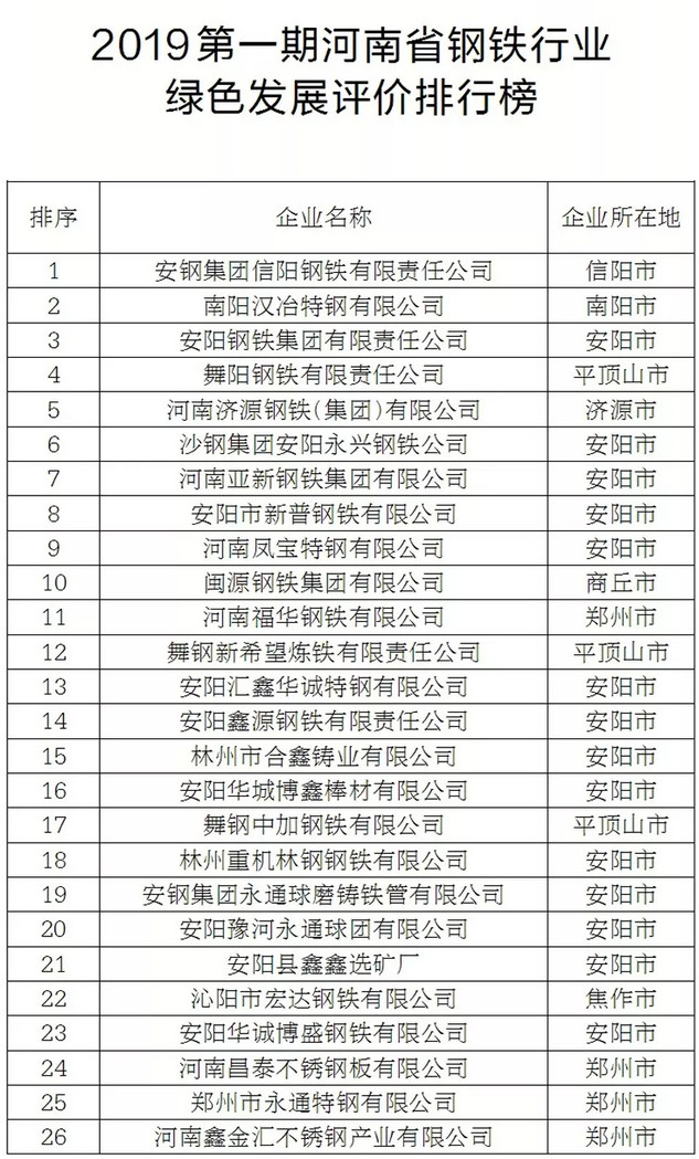 河南省12行業(yè)企業(yè)綠色發(fā)展評價排行榜公布