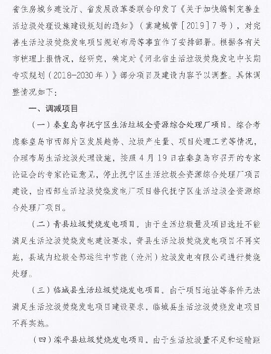 關(guān)注!河北垃圾焚燒發(fā)電部分項(xiàng)目及建設(shè)內(nèi)容調(diào)整