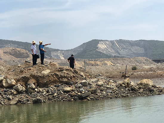 生態(tài)環(huán)境部派出的排查人員在排查現(xiàn)場(chǎng)通過手機(jī)對(duì)排查情況進(jìn)行錄入登記。郄建榮 攝