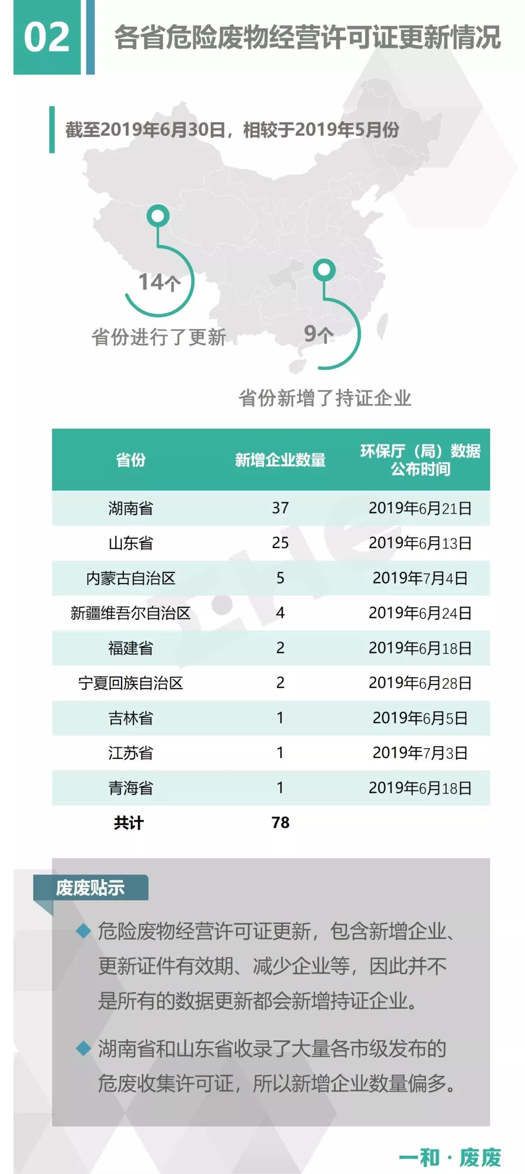 2019年6月全國危險(xiǎn)廢物經(jīng)營許可證統(tǒng)計(jì)概況
