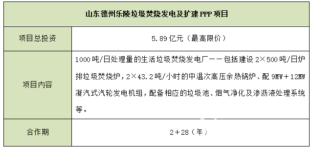 山東德州樂陵垃圾焚燒發(fā)電及擴(kuò)建PPP項(xiàng)目