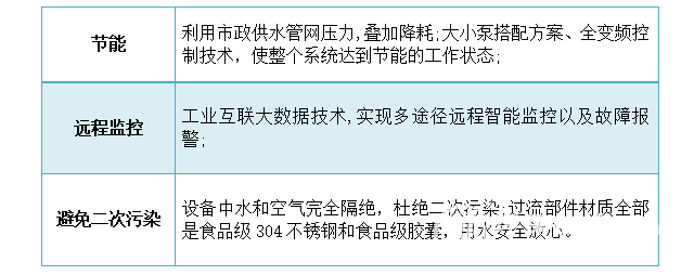 設備前端采用了無負壓流量控制器,能夠隨時監(jiān)測市政供水管網(wǎng)的壓力,根據(jù)供水管網(wǎng)壓力的變化調節(jié)穩(wěn)壓補償罐入口流量, 確保對市政管網(wǎng)不產生負壓,同時滿足用戶的用水需求,并且設備還具有節(jié)能、遠程監(jiān)控、避免二次污染的功能特別。