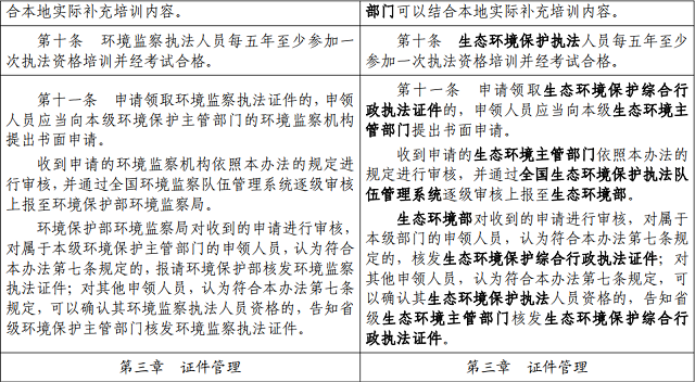 日前,生態(tài)環(huán)境部發(fā)布關(guān)于公開(kāi)征求《<環(huán)境監(jiān)察執(zhí)法證件管理辦法>修改單(征求意見(jiàn)稿)》意見(jiàn)的通知,詳情如下: