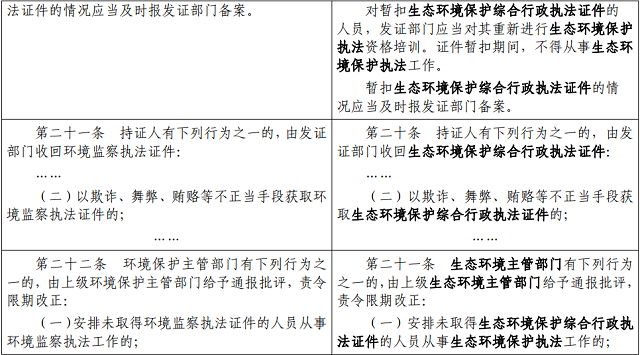 (二)以欺詐、舞弊、賄賂等不正當(dāng)手段獲取生態(tài)環(huán)境保護(hù)綜合行政執(zhí)法證件的;