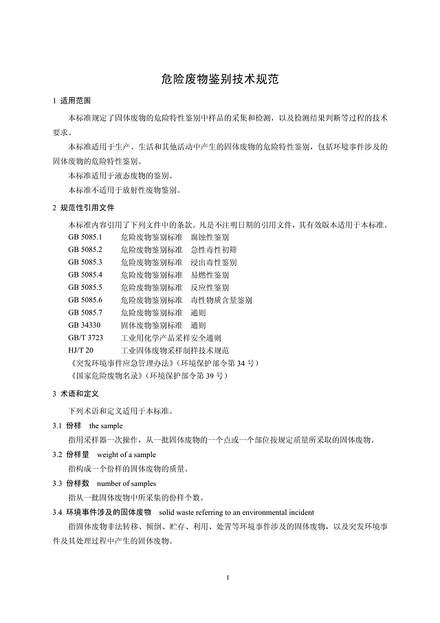 為貫徹《中華人民共和國環(huán)境保護法》和《中華人民共和國固體廢物污染環(huán)境防治法》,保護生態(tài)環(huán)境,保障公眾健康,加強危險廢物環(huán)境管理,規(guī)范危險廢物鑒別工作,現(xiàn)批準《危險廢物鑒別技術(shù)規(guī)范》為國家環(huán)境保護標準,并予發(fā)布。