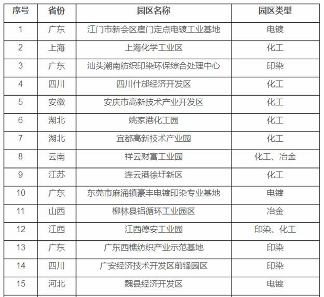 深入推進(jìn)環(huán)境污染第三方治理園區(qū)名單(擬)