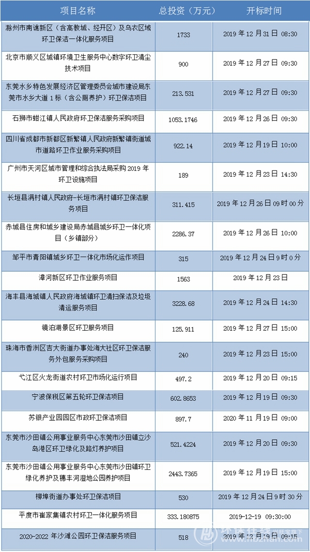 另附,12月即將開標(biāo)的環(huán)衛(wèi)項(xiàng)目,溫馨提示:不要錯(cuò)過投標(biāo)時(shí)間哦~
