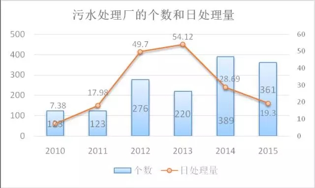 根據以上住建部統(tǒng)計數(shù)據看出,至2015年底,我國農村污水處理進展明顯滯后于城市,進行生活污水處理的鄉(xiāng)的比例只有7.1%,行政村為11.4%,有近九成鄉(xiāng)村未進行污水處理設施建造。而在污水處理中,集中式污水處理廠的建設明顯落后于分散式污水處理裝置,污水處理裝置的數(shù)量和日處理量都超過污水處理廠,分別為1701個和361個,處理量為33.46萬立方米/日和19.30萬立方米/日。但這些設施均不足以負擔農村日漸增長的污水排放體量!