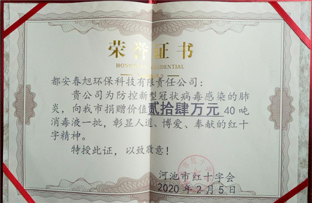 ▲捐贈獲得河池市紅十字會頒發(fā)的榮譽證書