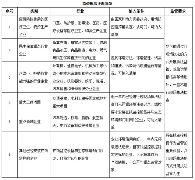 建立和實(shí)施環(huán)評(píng)審批正面清單和監(jiān)督執(zhí)法正面清單,著力提高工作效能,積極支持相關(guān)行業(yè)企業(yè)復(fù)工復(fù)產(chǎn),更加有力支撐保障疫情防控和促進(jìn)經(jīng)濟(jì)社會(huì)平穩(wěn)健康發(fā)展,落實(shí)精準(zhǔn)治污、科學(xué)治污、依法治污,加快推進(jìn)生態(tài)環(huán)境治理體系和治理能力現(xiàn)代化建設(shè)。兩個(gè)清單實(shí)行時(shí)間原則上截至2020年9月底,根據(jù)形勢需要可適當(dāng)延長。對(duì)行之有效、廣泛認(rèn)可的措施,可固化形成長效機(jī)制。鼓勵(lì)地方因地制宜,創(chuàng)造性地加以貫徹落實(shí)。