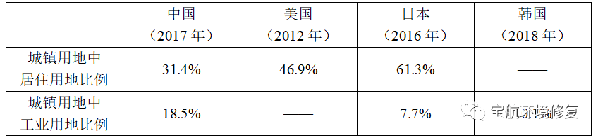 表3 中美日韓城鎮(zhèn)用地結(jié)構(gòu)差異
