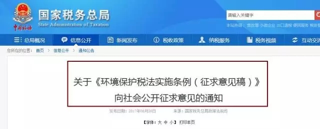 在環(huán)保稅法通過半年后(2017年6月26日),公眾得以正式參與建言獻(xiàn)策,財(cái)政部、國(guó)家稅務(wù)總局、環(huán)境保護(hù)部發(fā)布《中華人民共和國(guó)環(huán)境保護(hù)稅法實(shí)施條例(征求意見稿)》。
