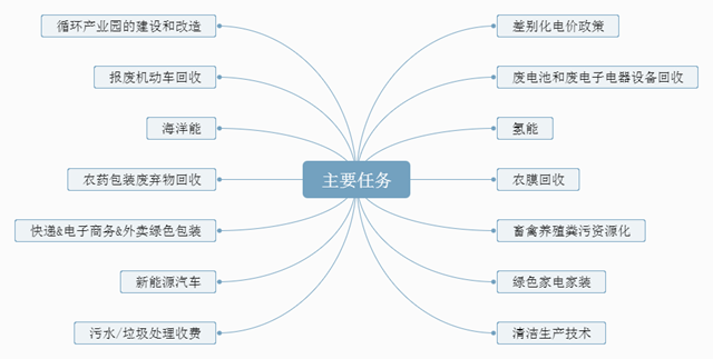 綠色生產(chǎn)和綠色消費囊括了社會生活的方方面面活動,主要任務(wù)進(jìn)一步細(xì)分了這兩大板塊的內(nèi)容。其中,要圈起來的點包括但不僅限于