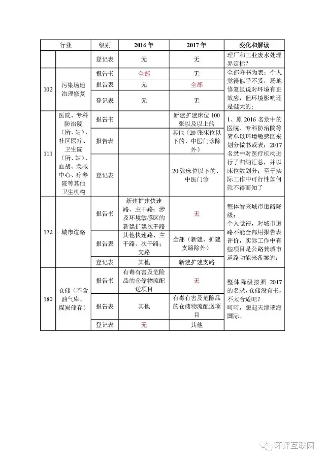 《建設(shè)項(xiàng)目分類管理名錄》2017版逐項(xiàng)PK2016版