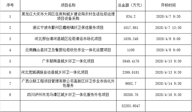 2020年4月,環(huán)衛(wèi)招標(biāo)的節(jié)奏依舊有點(diǎn)好。