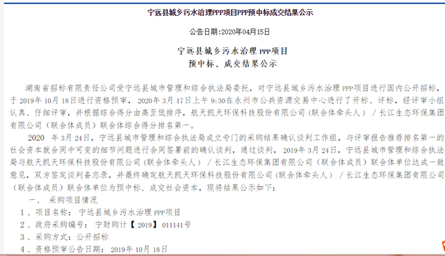 原標(biāo)題:再迎喜訊 | 航天凱天環(huán)保預(yù)中標(biāo)寧遠(yuǎn)縣城鄉(xiāng)污水治理PPP項(xiàng)目
