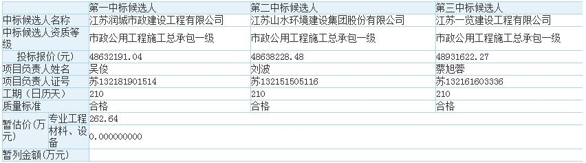 5、擬確定中標(biāo)人:江蘇潤城市政建設(shè)工程有限公司