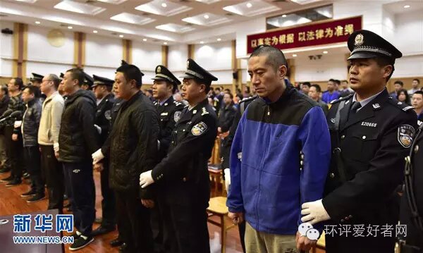 11月9日,瑞海公司董事長于學(xué)偉(右二)等直接責(zé)任人員在法庭受審。新華社記者 岳月偉 攝