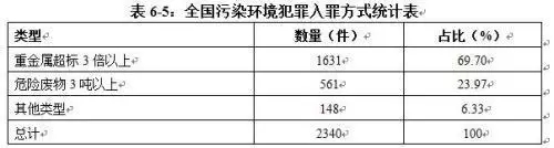 為此,報(bào)告指出,污染環(huán)境犯罪入罪方式集中化,重金屬超標(biāo)成為污染環(huán)境犯罪的罪魁,這也是當(dāng)前環(huán)境刑事司法的重要特征,需引起高度關(guān)注。