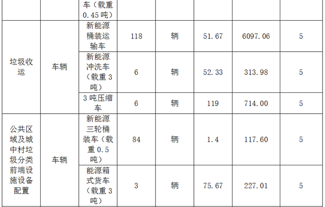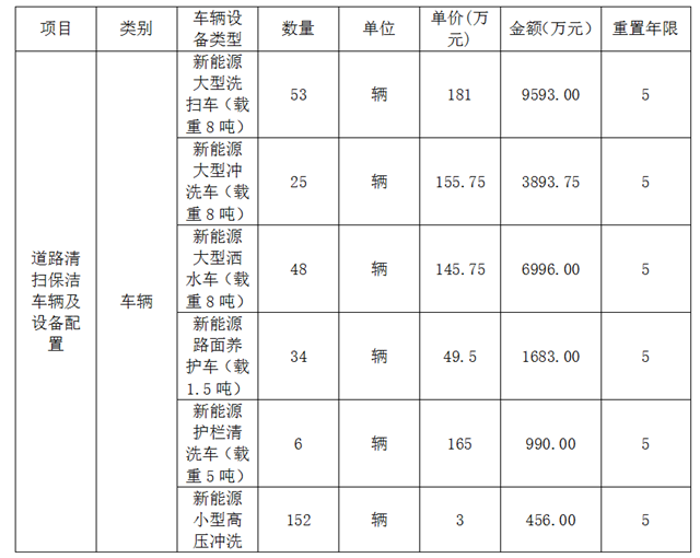 深圳寶安區(qū)環(huán)衛(wèi)項目部分5年需要重置新能源汽車(數(shù)據(jù)來源:招標文件)