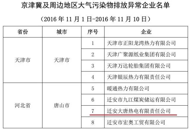 ▲11月1日至10日期間,京津冀及周邊地區(qū)大氣污染物涉嫌超標排放的8家企業(yè)名單