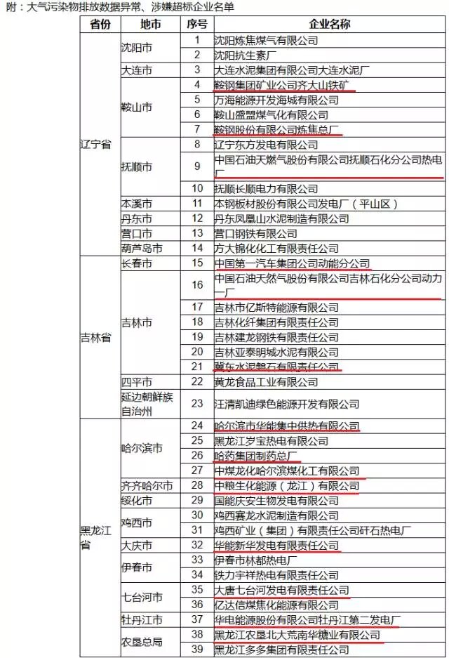 ▲10月,東北地區(qū)大氣污染物涉嫌超標排放的39家企業(yè)名單大企業(yè)本應(yīng)是遵紀守法的模范,在環(huán)保方面做表率,帶頭履行社會責任,然而卻涉嫌超標排放,實屬不該。一是集團缺乏有效監(jiān)管,環(huán)保責任沒有落實到位,這屬于管理不善。二是雖然明知下屬企業(yè)超標排污卻聽之任之,沒有采取措施阻止污染,這屬于縱容、包庇。無論是哪種情況,都表明一些大企業(yè)、大集團在履行環(huán)保責任方面存在缺失。