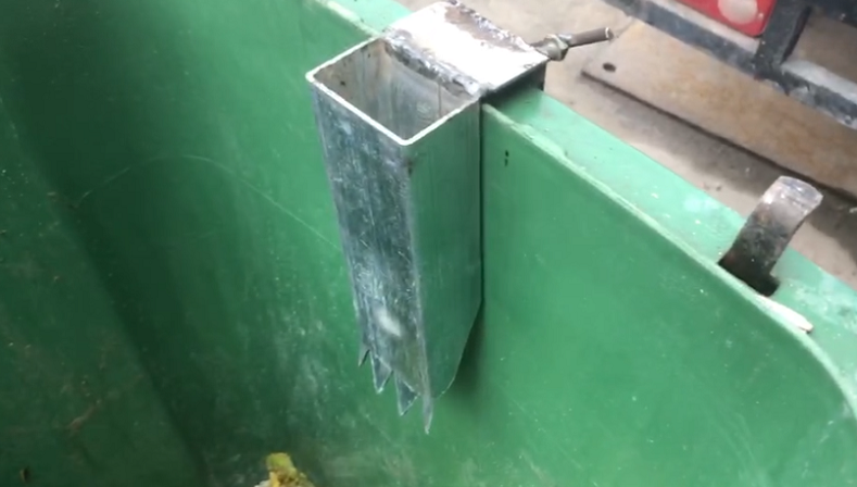 通常情況下,小區(qū)中產(chǎn)生的廚余垃圾和飯館中產(chǎn)生的“泔水”有著本質(zhì)的區(qū)別。“就拿咱們普通居民家庭的廚余垃圾桶來(lái)說(shuō),很少有居民家的廚余垃圾桶里扔的全是有異味的剩飯剩菜,大部分家庭的廚余垃圾桶里扔的其實(shí)是摘下來(lái)的菜葉、果核果皮、茶葉渣、雞蛋殼、花生瓜子皮等比較干燥的垃圾。這樣的廚余垃圾,就算敞著口在屋里擺上一天,甚至在家里過(guò)夜,其實(shí)都不會(huì)有太大的味道。”城管委工作人員解釋說(shuō),但是如果將異味較大的湯湯水水一股腦倒入廚余垃圾桶,會(huì)導(dǎo)致整桶廚余垃圾“泡湯”,暴曬發(fā)酵后更容易產(chǎn)生異味。所以,才會(huì)建議居民在投放廚余垃圾前,先將水分瀝干,避免“有味”。另外,按照《北京市居住小區(qū)垃圾分類(lèi)實(shí)施辦法》規(guī)定,廚余垃圾要“日產(chǎn)日清”,在垃圾投放高峰期,小區(qū)可以適當(dāng)增加收運(yùn)頻次或增加收集容器數(shù)量,確保垃圾桶不滿(mǎn)冒。廢舊鋼管被截成尖銳鋸齒狀倒刺的短棍,焊接成“L”形橫梁后,掛在廚余垃圾桶桶沿,一個(gè)廚余垃圾“破袋神器”便安裝完畢。▲ 破袋神器