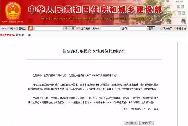 在第四個(gè)“世界廁所日”到來之際,住建部網(wǎng)站發(fā)布新標(biāo)準(zhǔn),將女性廁位與男性廁位比例提高到3:2,人流量較大地區(qū)為2:1,以緩解女性廁位緊張的問題。此標(biāo)準(zhǔn)將于今年12月1日起實(shí)施。