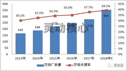 隨著國內垃圾焚燒發(fā)電技術不斷提升,通過直接焚燒處理,對工業(yè)垃圾減量化效果明顯,目前國內已有一批專業(yè)的從事建設、投資及運維的固廢焚燒企業(yè),工業(yè)垃圾發(fā)電也悄然興起。 據(jù)靈動核心產業(yè)研究中心發(fā)布的《2019-2024年中國垃圾焚燒發(fā)電行業(yè)現(xiàn)狀深度分析及前景投資分析報告》數(shù)據(jù)顯示,2018年新投入運行的生活垃圾焚燒廠超過70座,在建項目166座,擬建項目201座。2017年,我國城市生活垃圾焚燒處理量已達到7589萬噸,同比增長2.9%;此外,焚燒垃圾場數(shù)量從2010年的104座增加至2018年的354座,焚燒處理率由2010年的18.8%提高至39.2%。