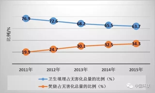 “十二五”期間城市生活垃圾不同無害化技術(shù)處理比例