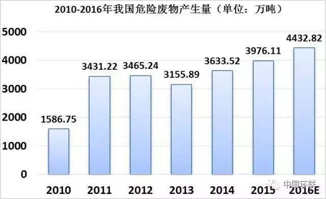 2016年,危廢真正實現(xiàn)集中處置的比例估計不到35%;2017年,危廢產(chǎn)生量預(yù)計超過6000萬噸,危廢處理市場挑戰(zhàn)和機遇并存。