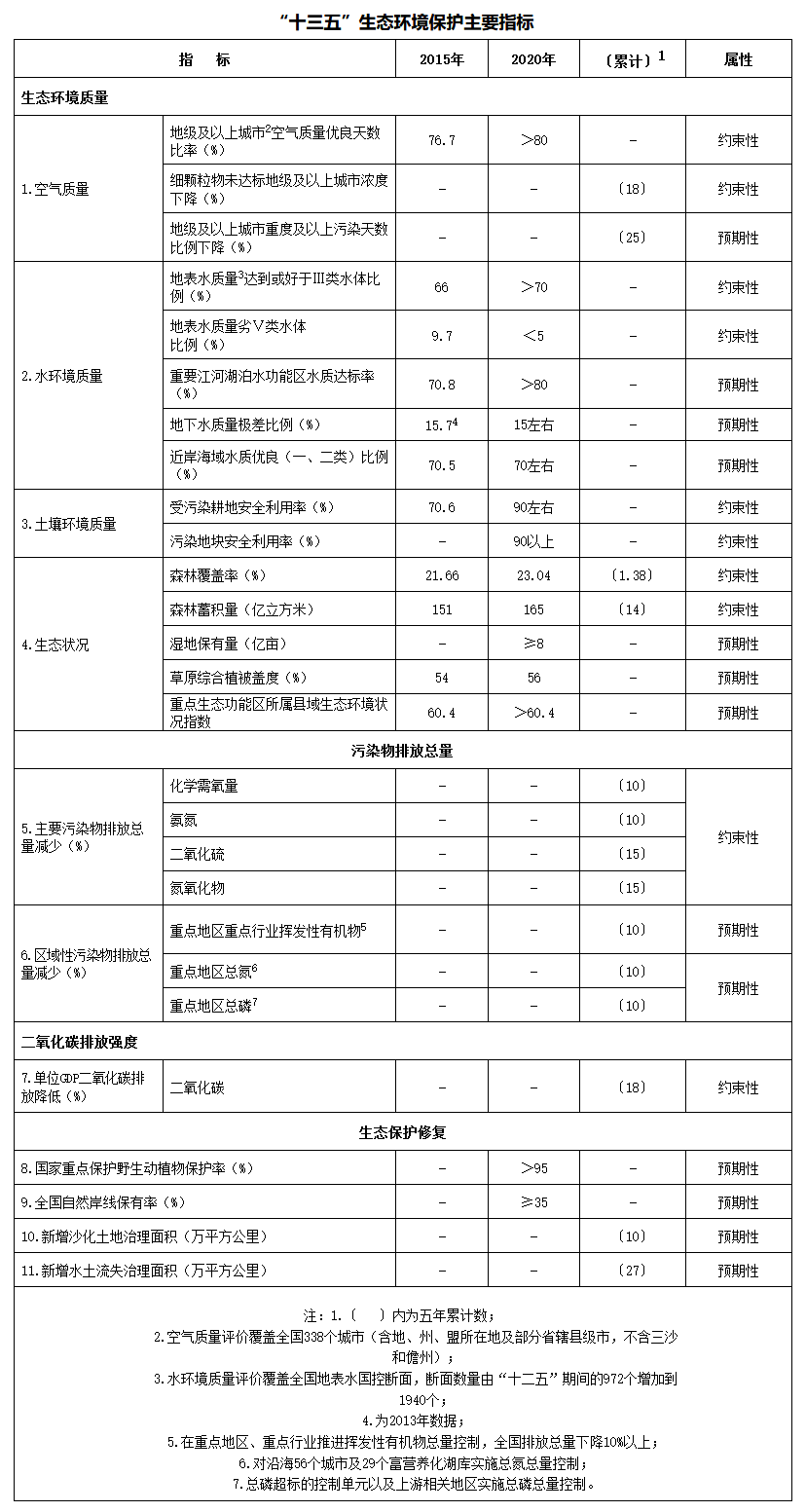 附件:“十三五”生態(tài)環(huán)境保護主要指標