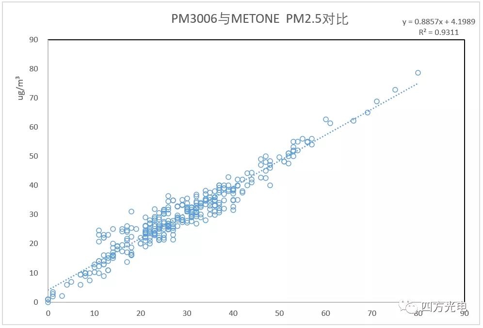 我國室外揚塵網(wǎng)格化監(jiān)測經(jīng)歷了早期的β射線吸收法,到采用民用凈化器大量應(yīng)用的激光粉塵傳感器的過程。在使用過程中發(fā)現(xiàn),民用的激光粉塵傳感器不僅不能滿足-30——70℃室外環(huán)境溫度的全天候使用要求,同時還必須面對監(jiān)測場所,特別是建設(shè)工地經(jīng)常噴灑降霾的水霧影響,或者下雨潮濕的氣候環(huán)境等。這種環(huán)境下,水霧經(jīng)常被判斷為嚴重霧霾造成爆表。同時網(wǎng)格化室外粉塵監(jiān)控希望得到局部的可以與國家大氣環(huán)境監(jiān)測網(wǎng)數(shù)據(jù)具備的PM2.5/PM10/TSP的多項參數(shù)對比, 民用激光傳感器由于激光功率小,采樣流量小, PM10分辨率很低,無法提供準確的PM10, 通常采用根據(jù)PM2.5的數(shù)字進行比例計算,造成PM10監(jiān)測數(shù)據(jù)失真。四方光電研制的PM3003X、 PM3006激光揚塵傳感器通過采用寬溫型大功率線型激光光源、API粉塵自動識別技術(shù)、先進的流道設(shè)計實現(xiàn)抗污染、大流量車規(guī)級采樣機構(gòu)、高濕度環(huán)境的水霧去除裝置等,低成本地實現(xiàn)了對室外揚塵粉塵與β射線吸收法達到0.9相關(guān)系數(shù)的高精度測量。