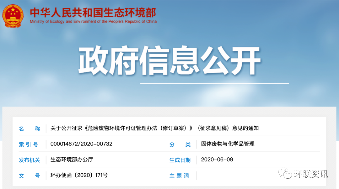 危險廢物環(huán)境許可證管理辦法(修訂草案)(征求意見稿)