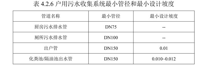 4.2.6 采用重力收集的戶用污水收集管道的設(shè)計(jì),應(yīng)符合下列規(guī)定: