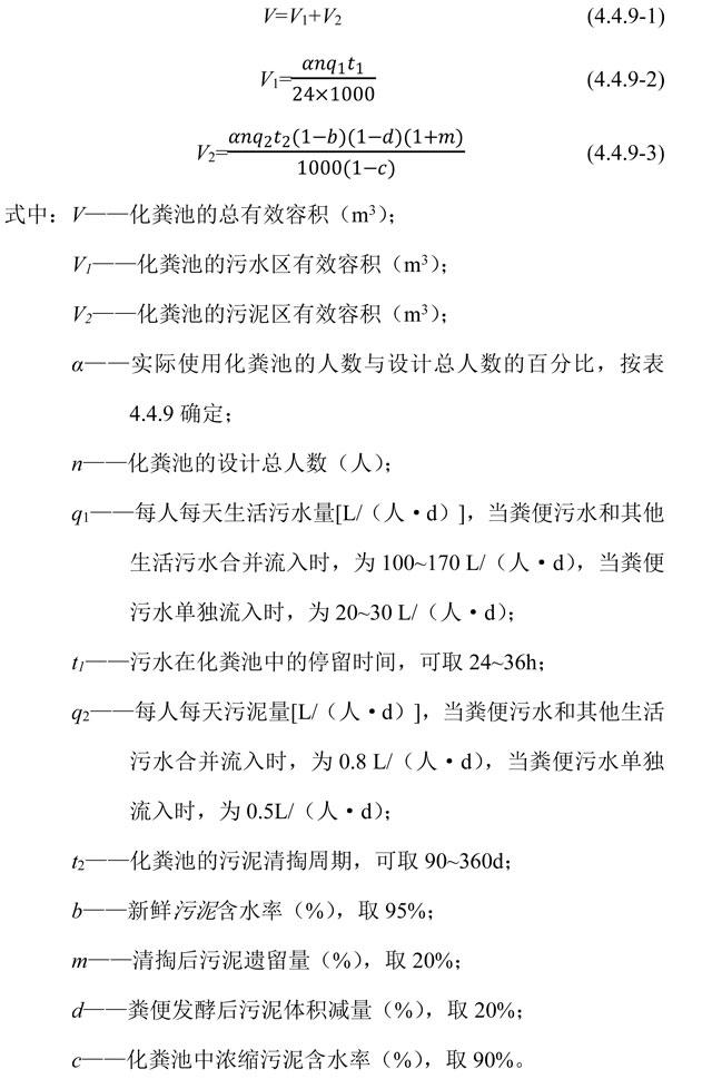 4.4.9化糞池的有效容積,宜按下列公式計(jì)算: