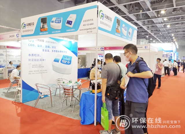 圖為廣東國際水展現(xiàn)場 參展觀眾駐足同奧科技展臺前