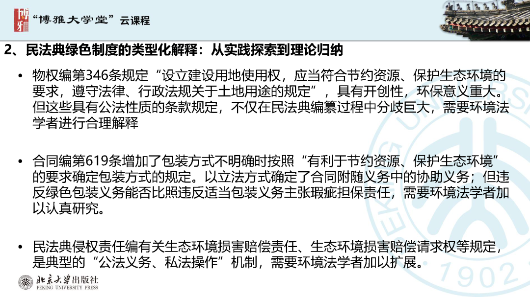 呂忠梅:綠色民法典實(shí)施:環(huán)境法的機(jī)遇與挑戰(zhàn)(“博雅大學(xué)堂”PPT)