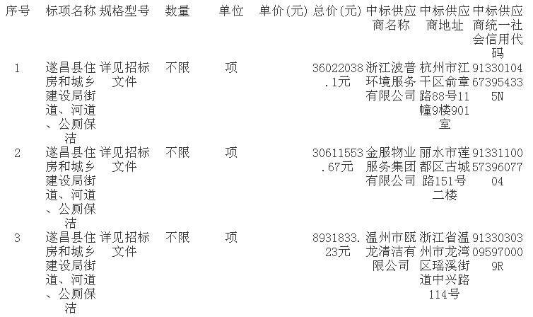 浙江遂昌縣縣城街道清掃、河道公廁保潔及垃圾中轉(zhuǎn)服務(wù)項目的中標(biāo)公告