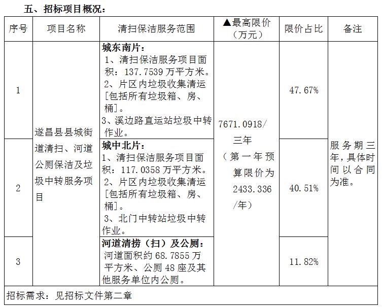 二、項目名稱: 遂昌縣縣城街道清掃、河道公廁保潔及垃圾中轉(zhuǎn)服務(wù)項目