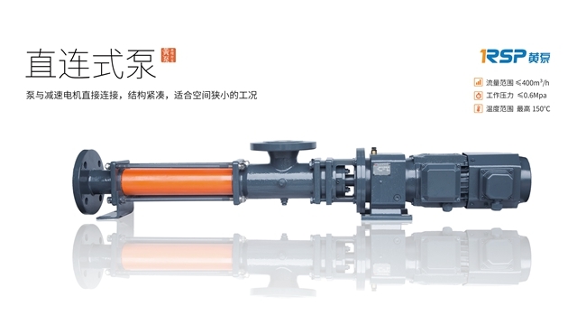 黃泵直連式單螺桿泵,泵體和減速電機(jī)直接連接,結(jié)構(gòu)緊湊,所需安裝空間更小,重量更輕,維修拆卸更簡便。適合輸送有固體顆?;蚶w維,流動性較好或一般的介質(zhì)。