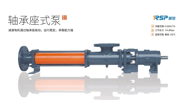 黃泵軸承座式單螺桿泵,減速機(jī)或電機(jī)通過軸承座驅(qū)動,運行穩(wěn)定,承載能力強(qiáng),剛性好,維護(hù)方便。適合輸送有固體顆?;蚶w維,流動性較好或一般的介質(zhì)。